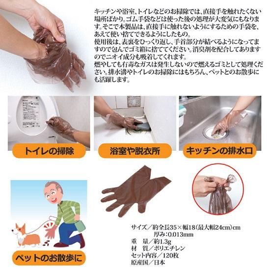 使用後は、表裏をひっくり返し、手首部分が結べるようになってますので包んでゴミ箱に捨ててください。
