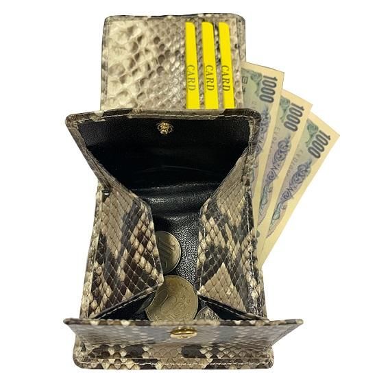 開運祈願 本革パイソン2つ折りボックス小銭入れ財布(3665)